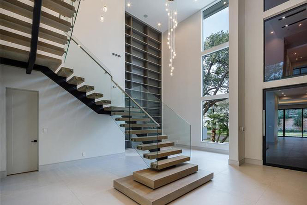 porcelain floors. Study room with height built-in ceilings. An amazing staircase with glass panels. Two crystal chandaliers.
